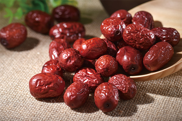 紅棗是一種營養佳品,被譽為“百果之王”,民間有“天天吃紅棗,一生不顯老”之說。紅棗不僅是人們喜愛的果品,也是一味滋補脾胃、養血安神、治病強身的良藥。紅棗可供藥用,有養胃、健脾、益血、滋補、強身之效,棗仁與根均可入藥,棗仁可以安神,是重要藥品之一。